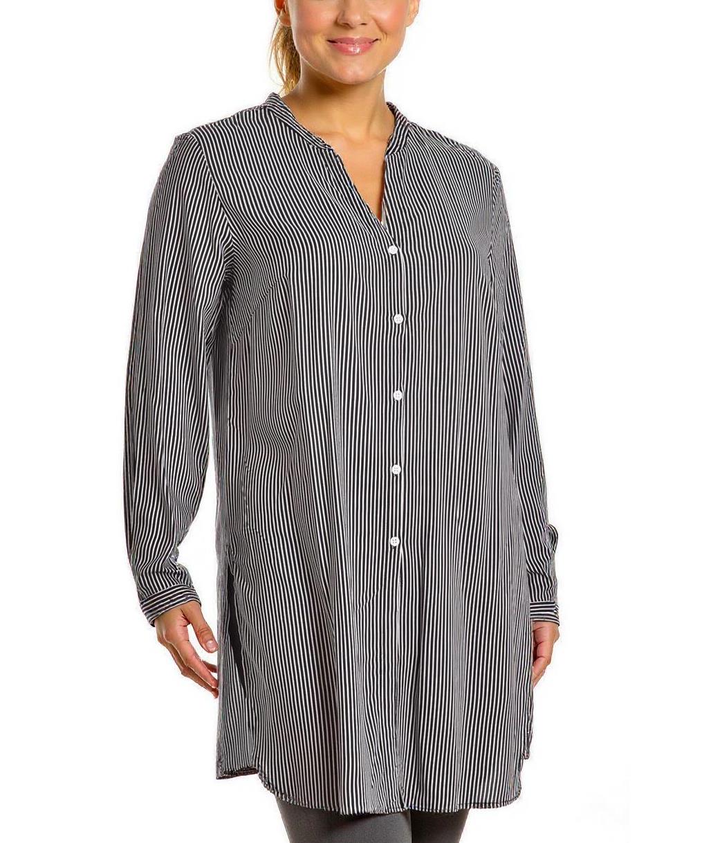 Елегантна дамска туника от вискоза с фини вертикални райета. Свободна кройка, дълги ръкави и копчета отпред. Мека, комфортна и подходяща за ежедневие или офис визия. Лесна за поддръжка, налична S-XXL.