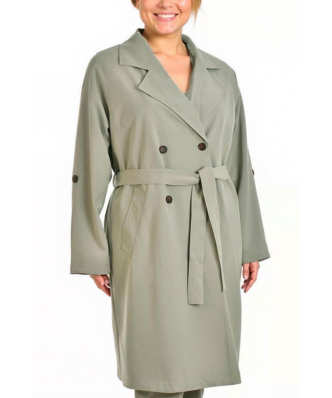 Дамски шлифер в мека салвия зелена тоналност, двуредно закопчаване, колан и джобове. Свободна кройка, елегантен минималистичен дизайн за пролет и есен, удобен и стилен вариант. Лесна поддръжка, пране.