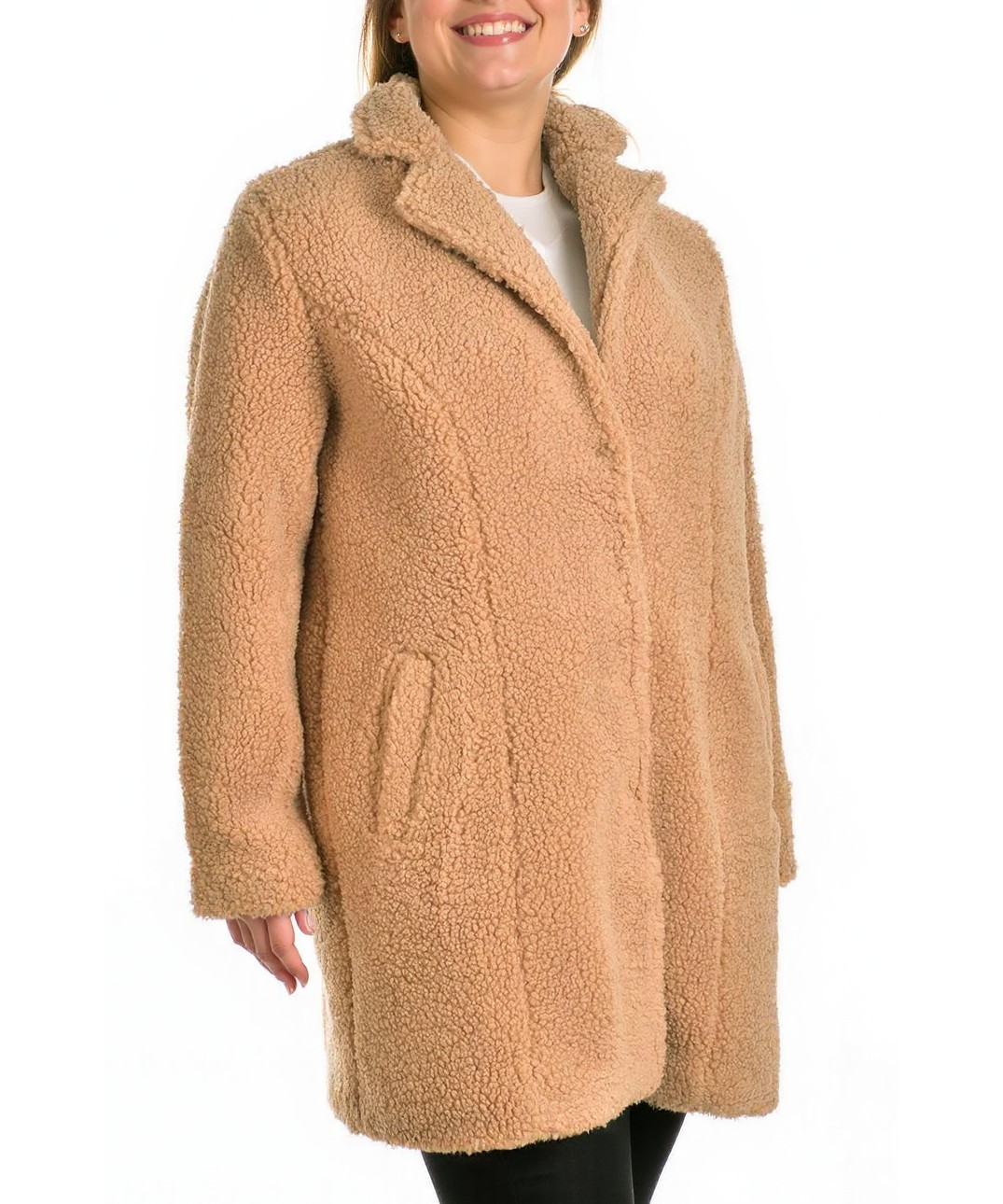Стилно дамско палто от мек, плътен еко-вълнен материал 'тедди' в бежов нюанс. Дължина над ханша, удобни джобове, класическа яка и скрито закопчаване. Топло, изключително комфортно и модерно. Перфектен