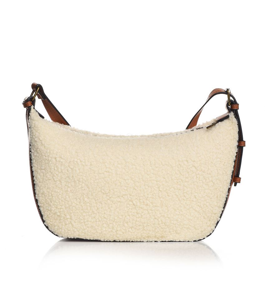Елегантна дамска чанта от еко кожа с меко овчеобразно покритие в кремаво. Регулируема дръжка, цип и просторен интериор. Стилен аксесоар за ежедневие и студен сезон. Подходяща за подарък. Лека и топла.