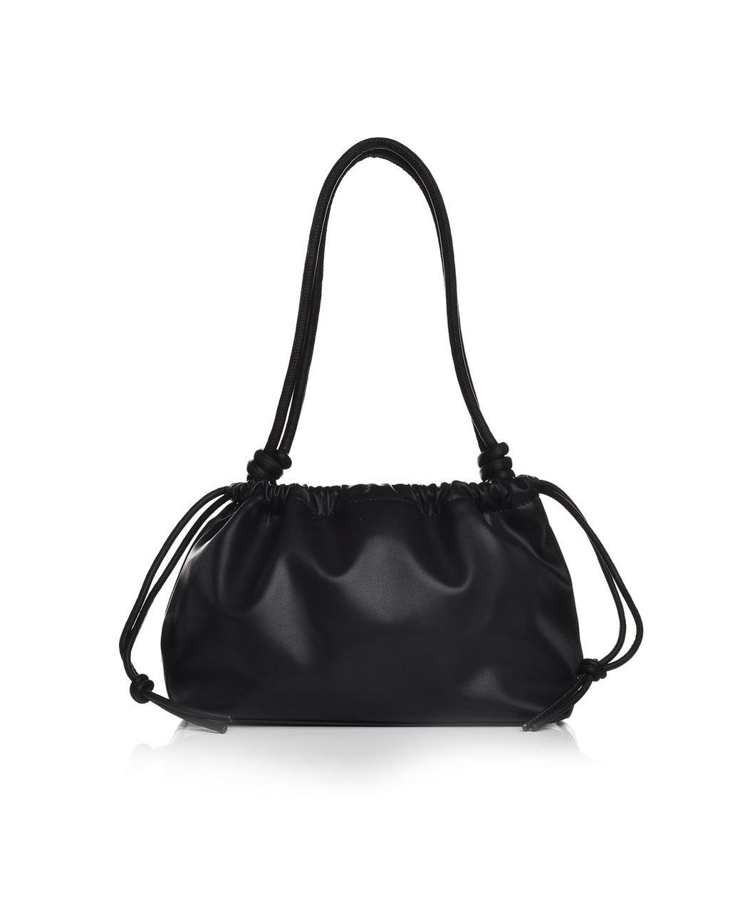 Елегантна дамска чанта от еко кожа в черно, мека, събрана горна част с връзки, регулируема презрамка, просторен вътрешен обем и практичен дизайн за всекидневна и вечерна визия. Подходяща за всеки сезон.