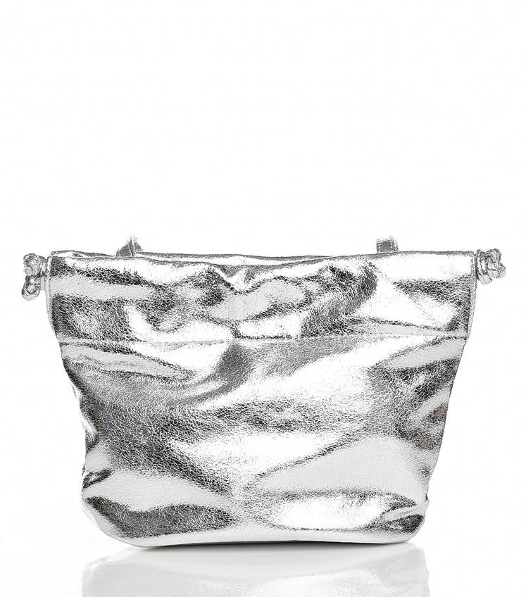 Стилна дамска чанта от еко кожа с метален сребрист блясък. Просторна, лека и практична, с регулируема дръжка и вътрешен джоб. Идеална за ежедневие и вечерни излизания. Лек и модерен, лесен за поддръжка