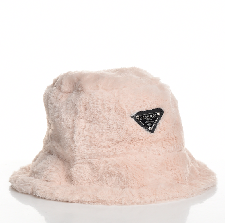 Мека плюшена шапка тип bucket в нежно розово, топла и стилна. Универсална форма, удобна периферия и декоративна метална емблема. Идеална за студено време и модерни визии. Перфектна за града и подарък.!!