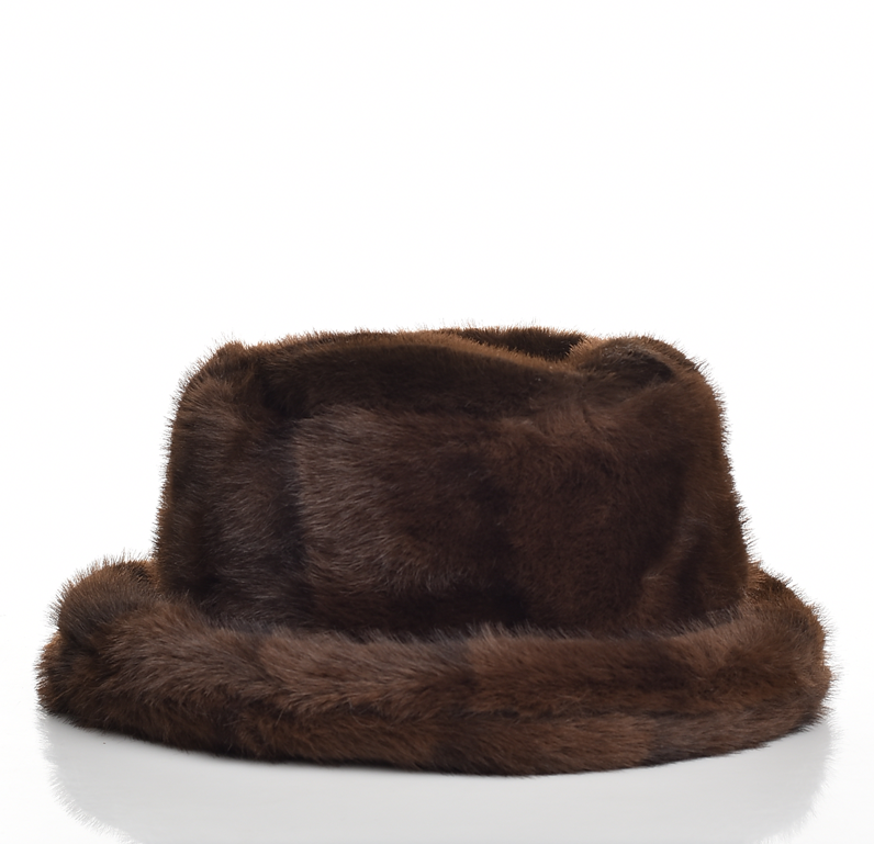 Класическа кафява шапка от пухкава норкова кожа, мека и топла, с изпипани детайли и сглобен ръчен шев. Елегантен, универсален модел за зимни тоалети и официални поводи. Вътрешна подплата и удобен ръб.