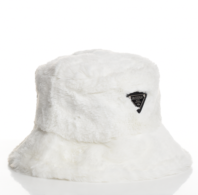 Бяла пухена шапка тип bucket от еко плюш с мека подплата и метална емблема. Топла, модерна и удобна за зимни градски визии. Лесна за поддръжка и комбиниране. Подходяща за палта, якета и спортни аутфити.!
