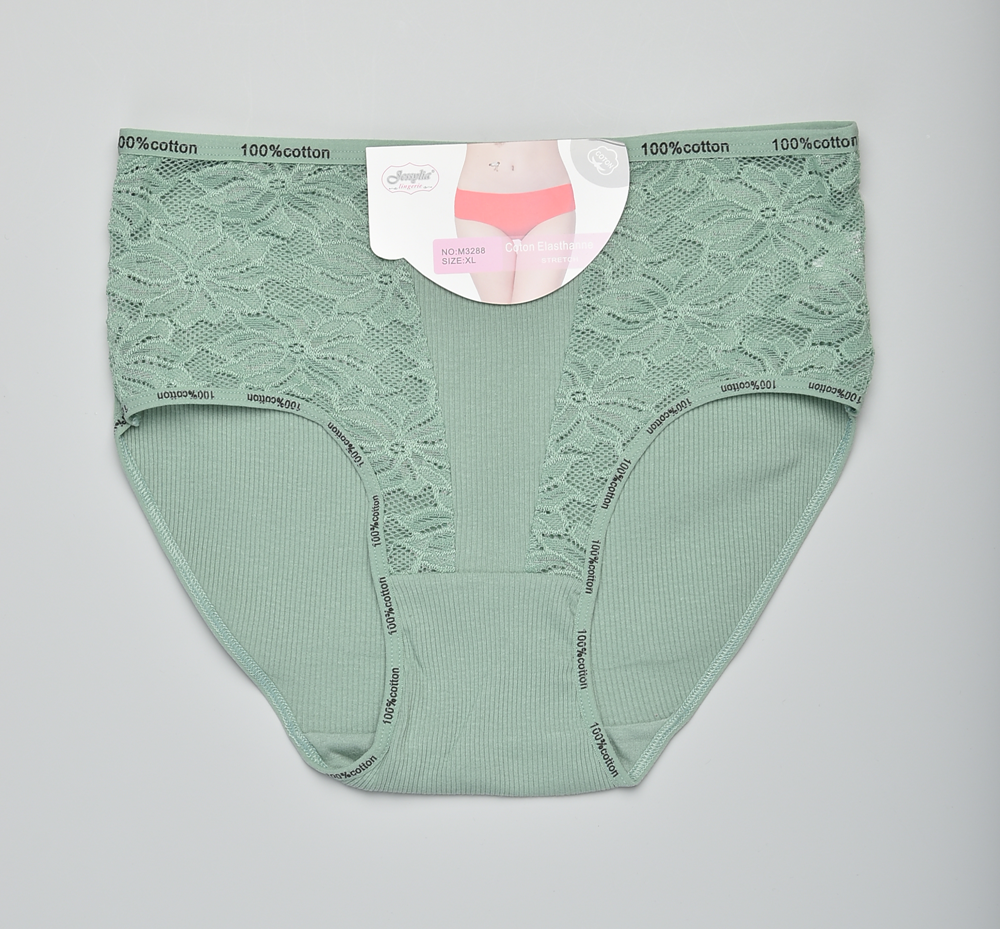 Жени бикини от 100% памук в зелено с деликатна дантела отпред. Меки, дишащи и удобни за всекидневна употреба, с еластичен колан за перфектно прилягане и нежна обшивка за комфорт през целия ден. Пране.