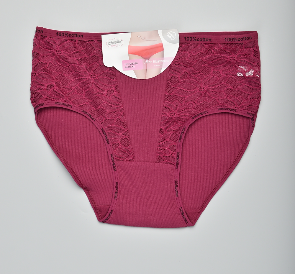 Дамски бикини от 100% памук, меко ребристо тяло и дантелени страни, комфортна висока талия, дишаща материя, перфектни за всеки ден. Нежни, здрави и лесни за поддръжка. Подходящи за пране при 40°C. плюс