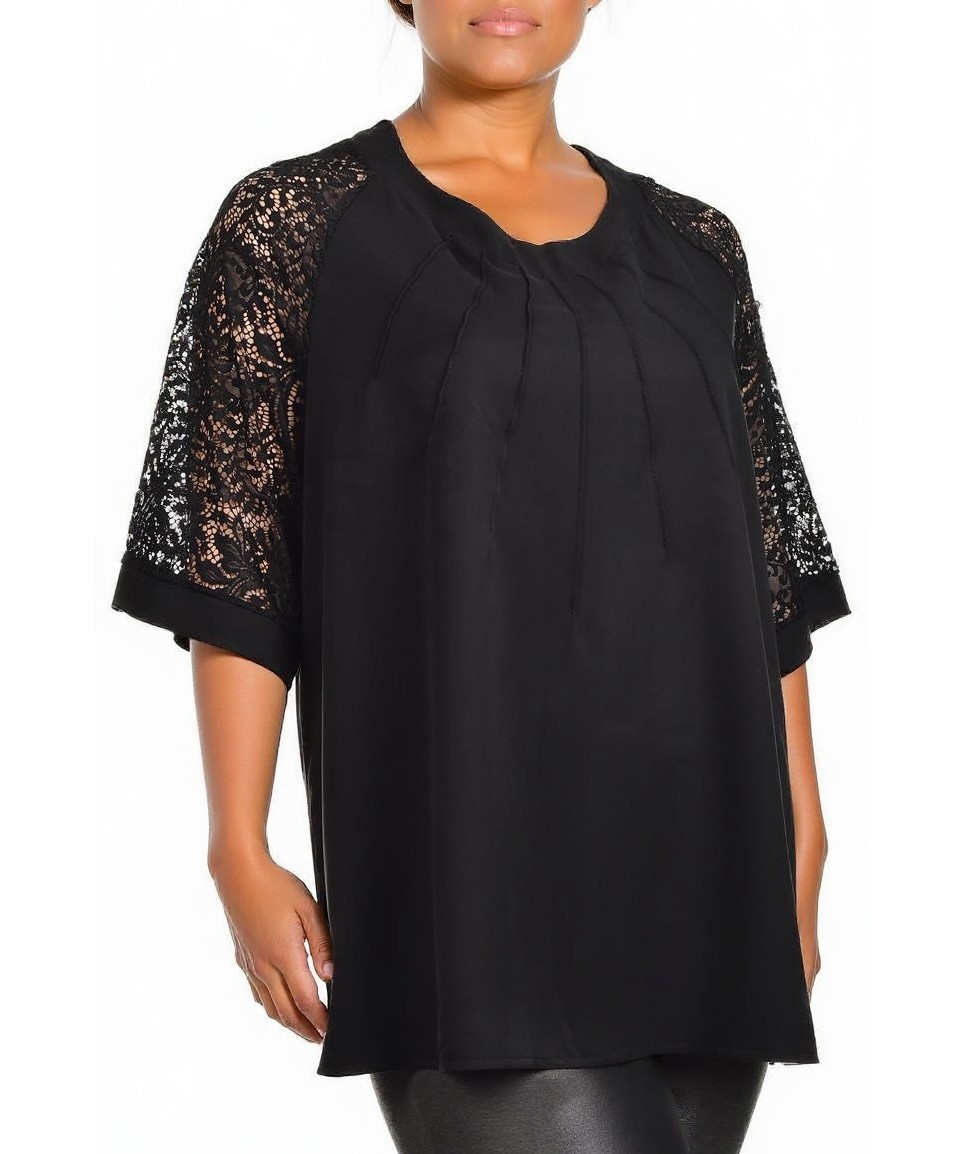 Елегантна дамска блуза от вискоза с къси дантелени ръкави, свободна кройка и финни плисета отпред. Меко падане, идеална за офис и вечерни тоалети. Лесна за поддръжка и носене. Идеална за всеки ден.