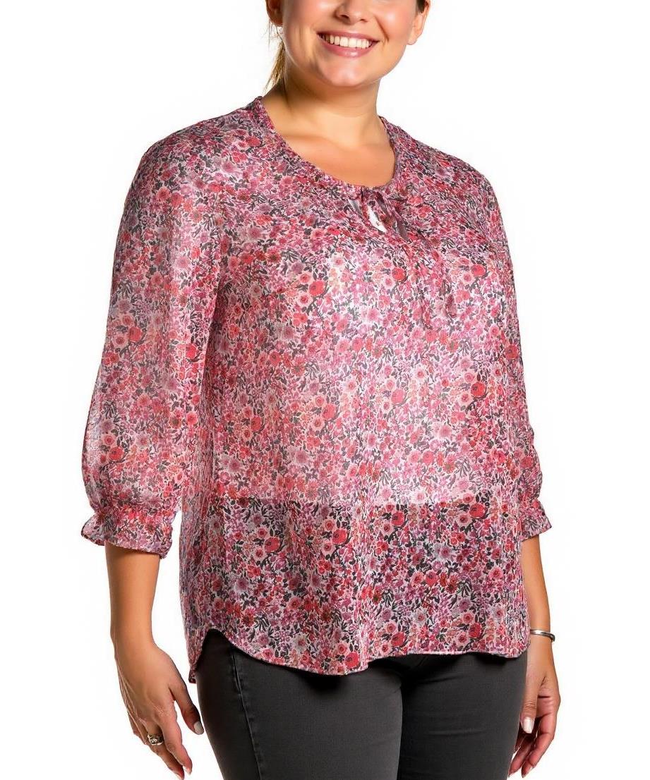 Дамска блуза от лек шифон с розово-червен флорален десен. Свободен силует, 3/4 ръкави с ластик и деколте с тънка връзка. Подходяща за всекидневна и по-елегантна визия. Подходяща за пролетни и летни дни!!