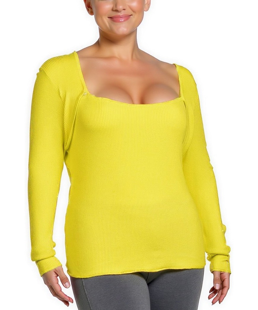 Дамска блуза от вискоза в ярко жълто. Мека, дишаща и приятна на допир. Дълги ръкави и модерно квадратно деколте. Леко приталена кройка, елегантен и удобен избор за всеки ден. Поддръжка: машинно пране.
