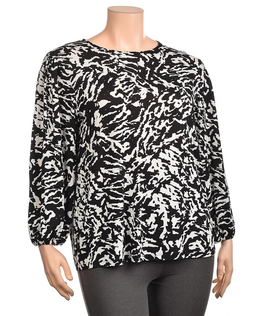 Дамска блуза от вискоза с модерна черно-бяла абстрактна щампа. Комфортна, мека на допир, с дълъг ръкав и кръгло деколте. Подходяща за всеки ден и елегантни комбинации.