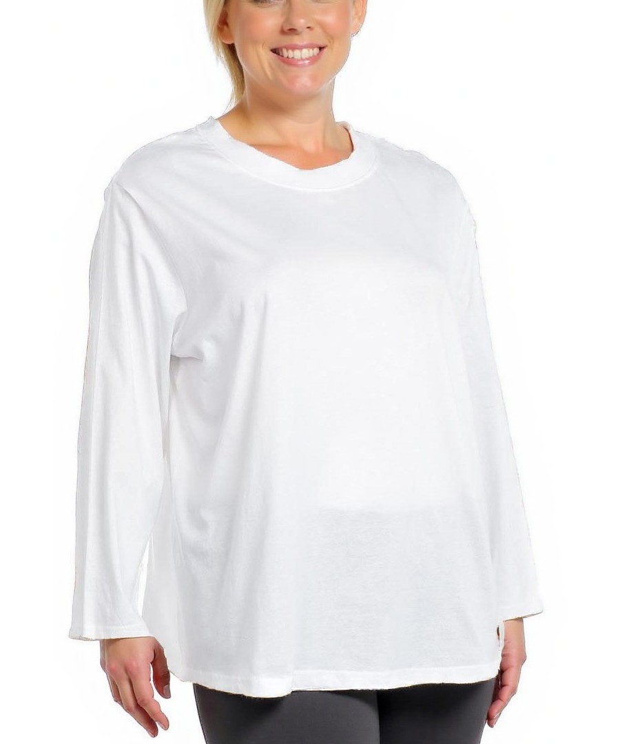 Дамска блуза от памук в бял цвят с мека, дишаща материя. Свободна кройка, дълги ръкави и класическо кръгло деколте. Подходяща за всеки ден, удобна и лесна за поддръжка. Лесна за комбиниране и ежедневна.