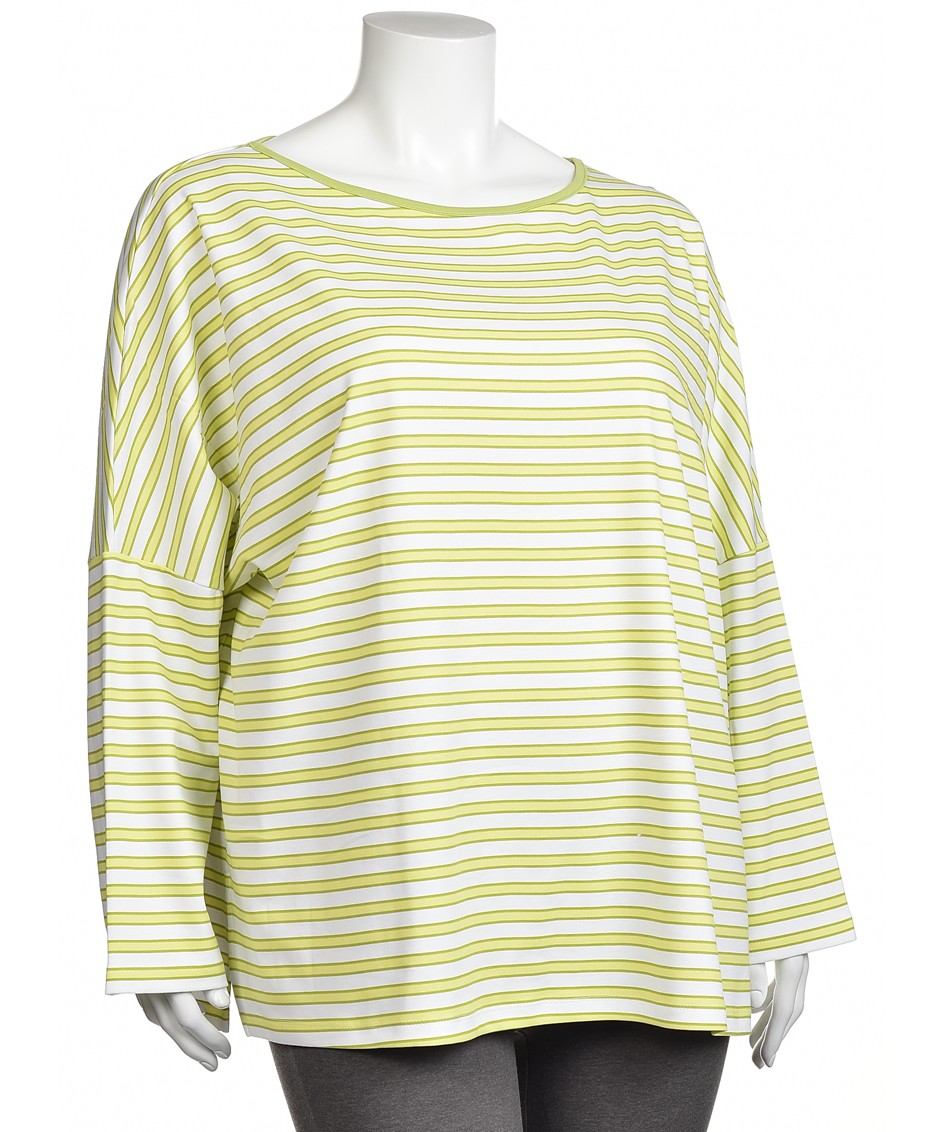 Дамска памучна блуза с широка свободна кройка и кръгло деколте. Дълги ръкави и фини зелено-бели райета. Мека, дишаща материя за ежедневен комфорт и лесна поддръжка. Налични размери S-XXL. Без бръчки.
