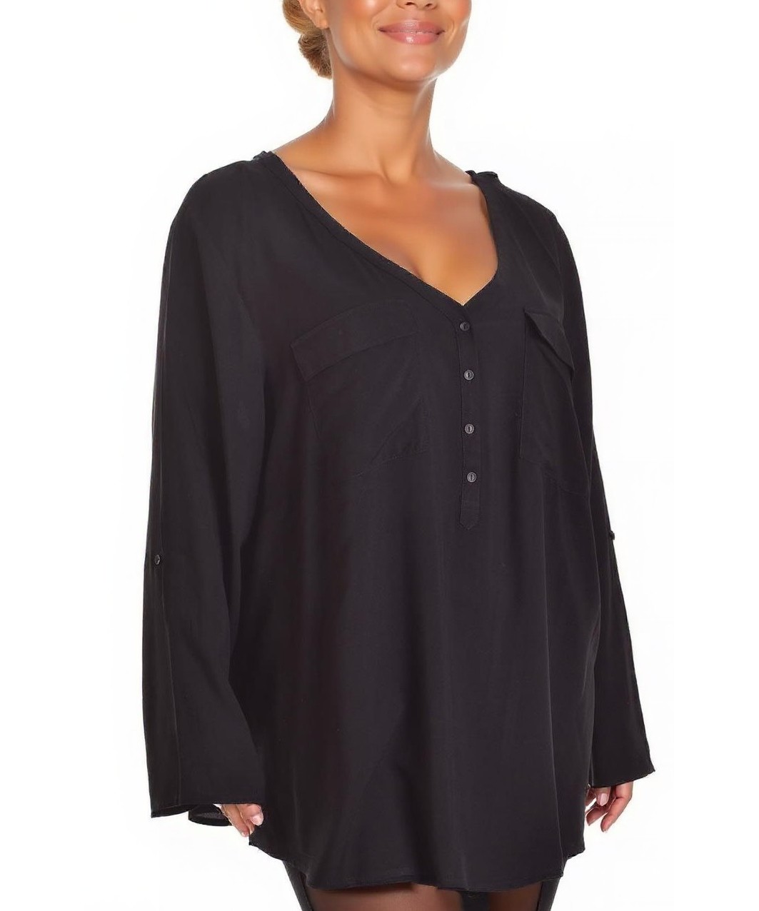 Елегантна дамска блуза от вискоза с разкроен силует, V-образно деколте и копчета, джобчета на гърдите и дълги ръкави с опция за закопчаване. Мека, лека и удобна за всекидневно носене. За всяко събитие