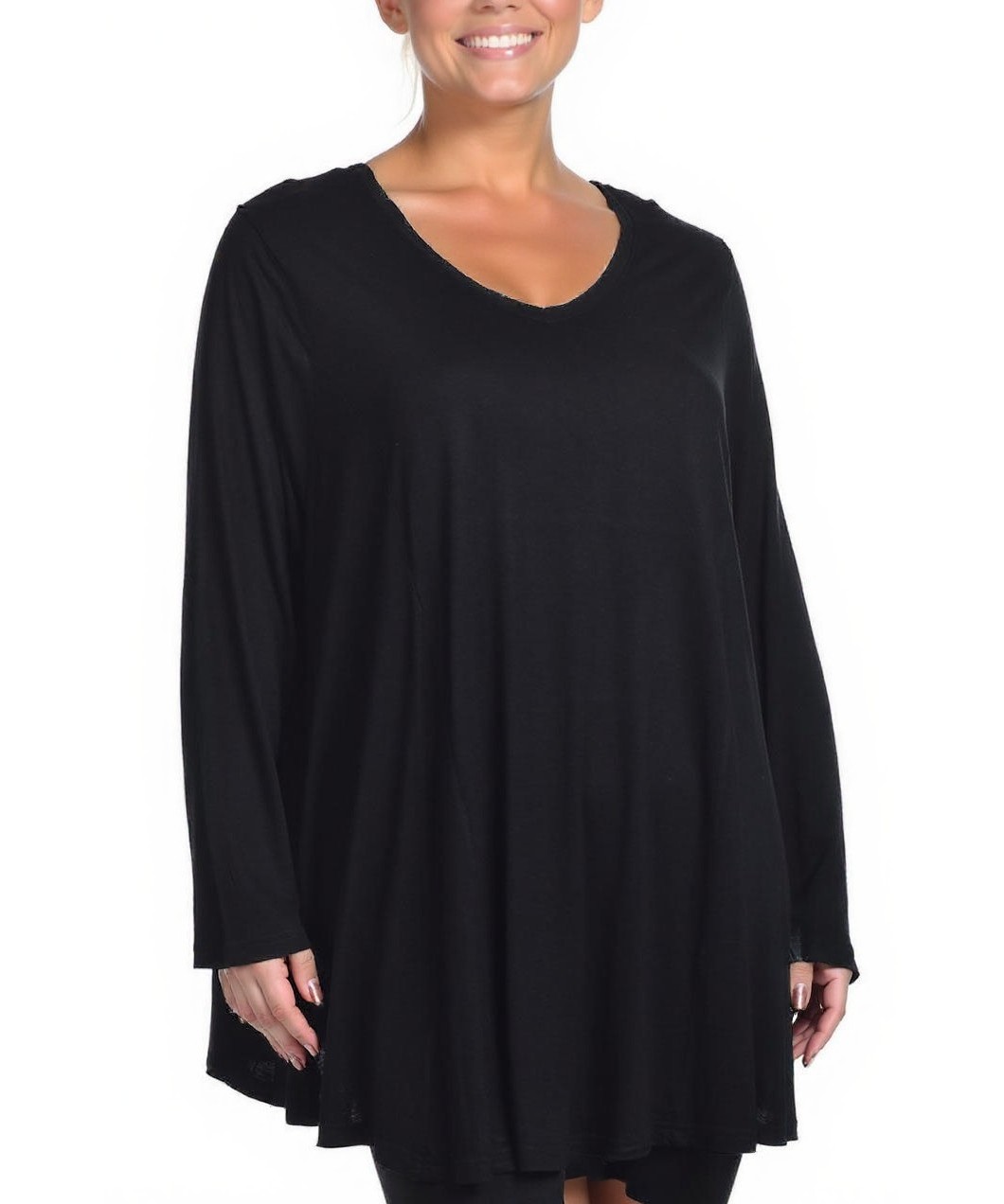 Дамска блуза от вискоза с V-образно деколте и дълъг ръкав. Свободна, течаща линия, мека и дишаща материя. Универсална за всеки ден и работа, класически черен цвят, лесна за комбиниране. Разм. S-XXL.