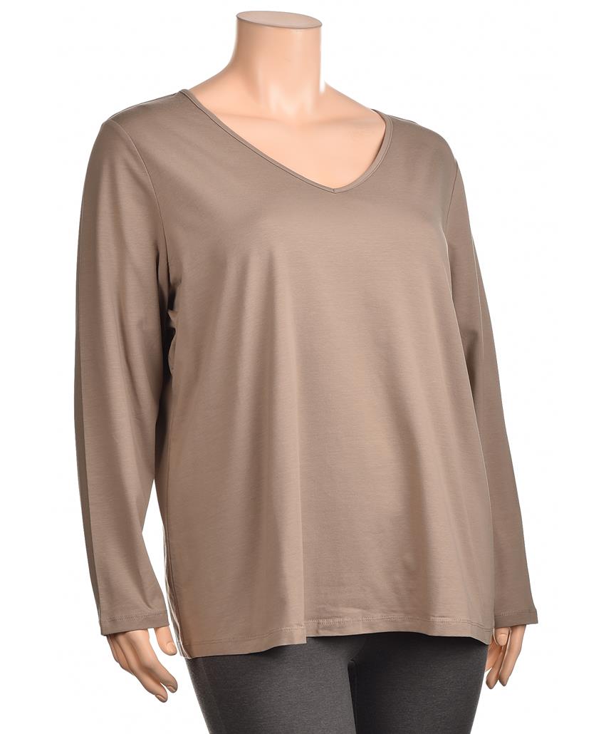 Дамска памучна блуза с V-образно деколте и дълги ръкави. Свободна кройка за комфорт, универсален бежов нюанс, мека, дишаща материя. Подходяща за всеки ден и лежерни визии. Поддържа форма и цвят, еласт.