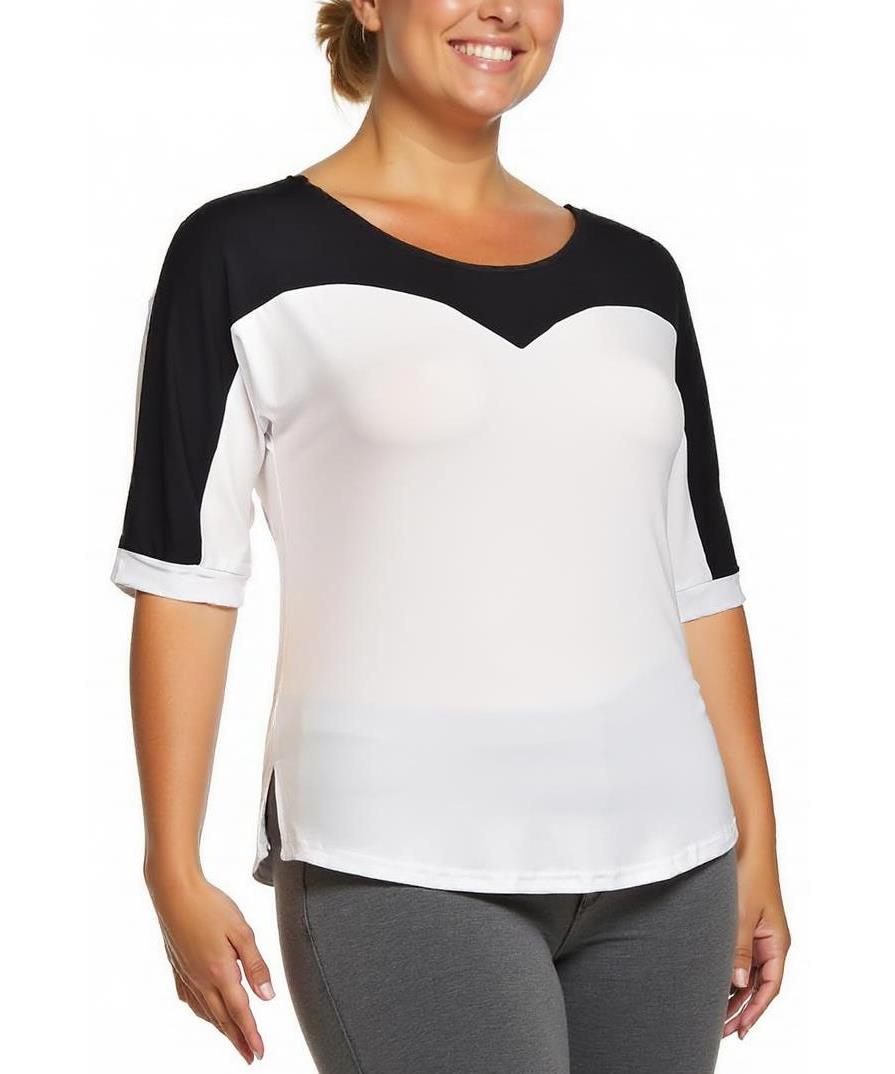 Елегантна дамска блуза с къс ръкав и контрастен дизайн. Тя съчетава черно и бяло, като създава стилен визуален ефект. Изработена от лека и удобна материя, идеална за ежедневието или офиса.