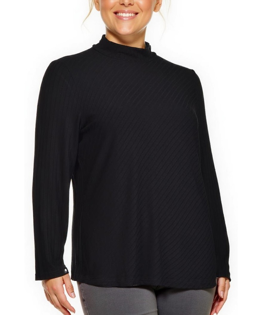 Черна дамска блуза с дълъг ръкав, изработена от мека и комфортна вискоза. Дизайнът е елегантен с изчистени линии и леко рипсен ефект. Подходяща за ежедневна или офис визия.