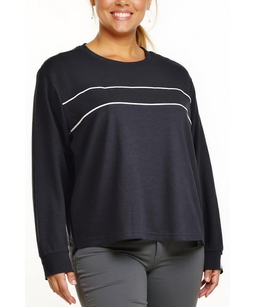 Комфортна дамска блуза от 100% памук с широк, свободен силует, дълъг ръкав и елегантни бели линии отпред. Мека, дишаща и лесна за комбиниране в ежедневни и свободни визии. Перфектна за всеки сезон.