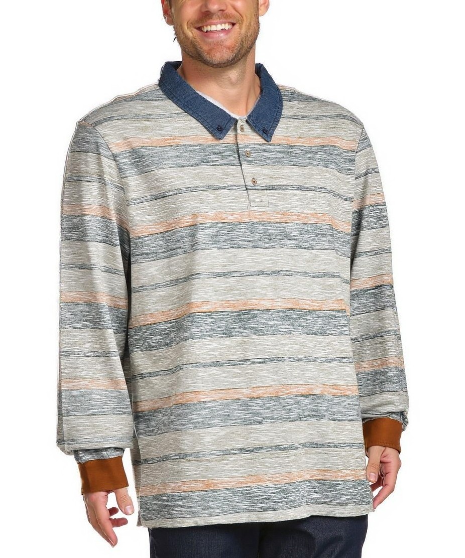 Дамска памучна блуза с нежни хоризонтални райета в сиво и бежово. Свободна кройка, дълги ръкави с контрастни маншети и изчистена яка с копчене. Удобна и ежедневна. Подходяща за пролет, офис и уикенд.!