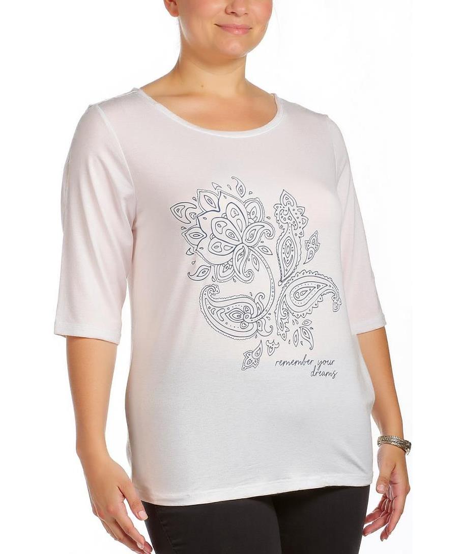 Дамската блуза от вискоза е с 3/4 ръкави и е украсена с нежна, елегантна графика с флорални мотиви в предната част. Надписът “remember your dreams” добавя вдъхновяващ акцент към този стилен модел.