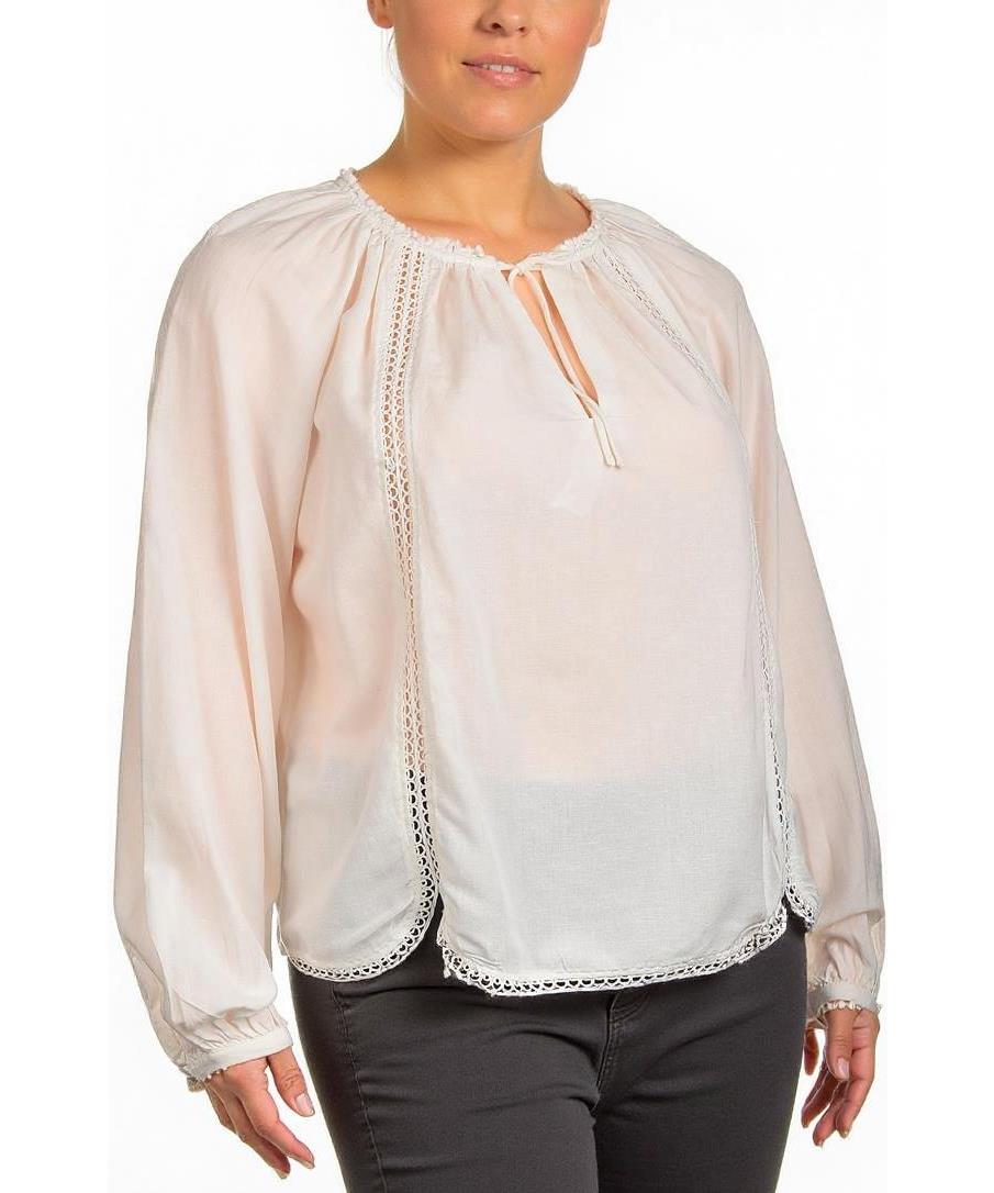 Дамска блуза от памук, лека и удобна, идеална за ежедневието. Със свободна кройка и декорация от дантела, придаваща елегантност. Подходяща за всякакъв стил, съчетаваща комфорт и женственост.