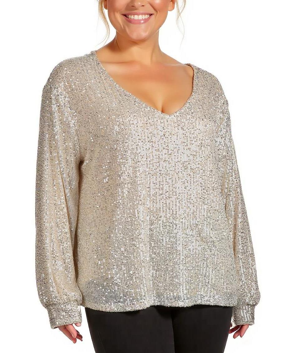 Луксозна дамска блуза с V-образно деколте, дълги ръкави, свободна кройка и сребрист блясък от пайети. Идеална за партита, официални и празнични вечери. Подходяща с елегантни панталони или пола – стилна