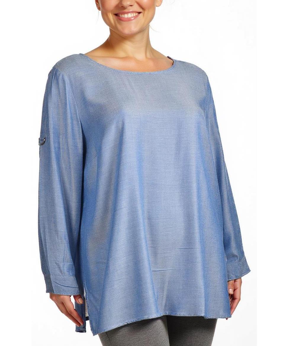 Дамска блуза от фина вискоза, с дълги ръкави и свободна кройка. Нежен син цвят, подходящ за ежедневието. Комфортна и стилна, идеална за комбиниране с панталони или поли.