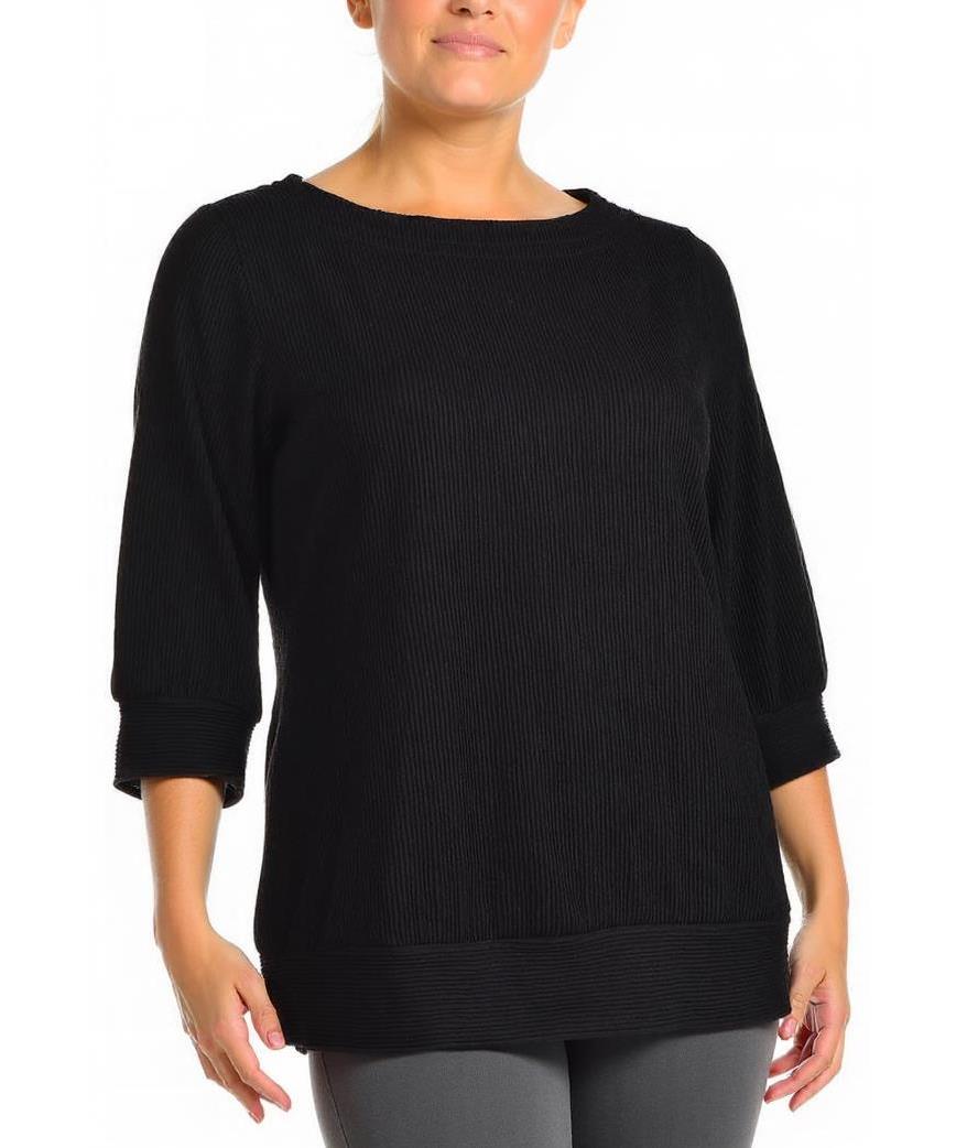 Елегантна дамска блуза в черно с фино ребристо плетиво, свободна кройка и ефирно 3/4 ръкавче. Универсална и удобна, подходяща за ежедневие и офис, лесно се комбинира с дънки или панталон. Стилен избор