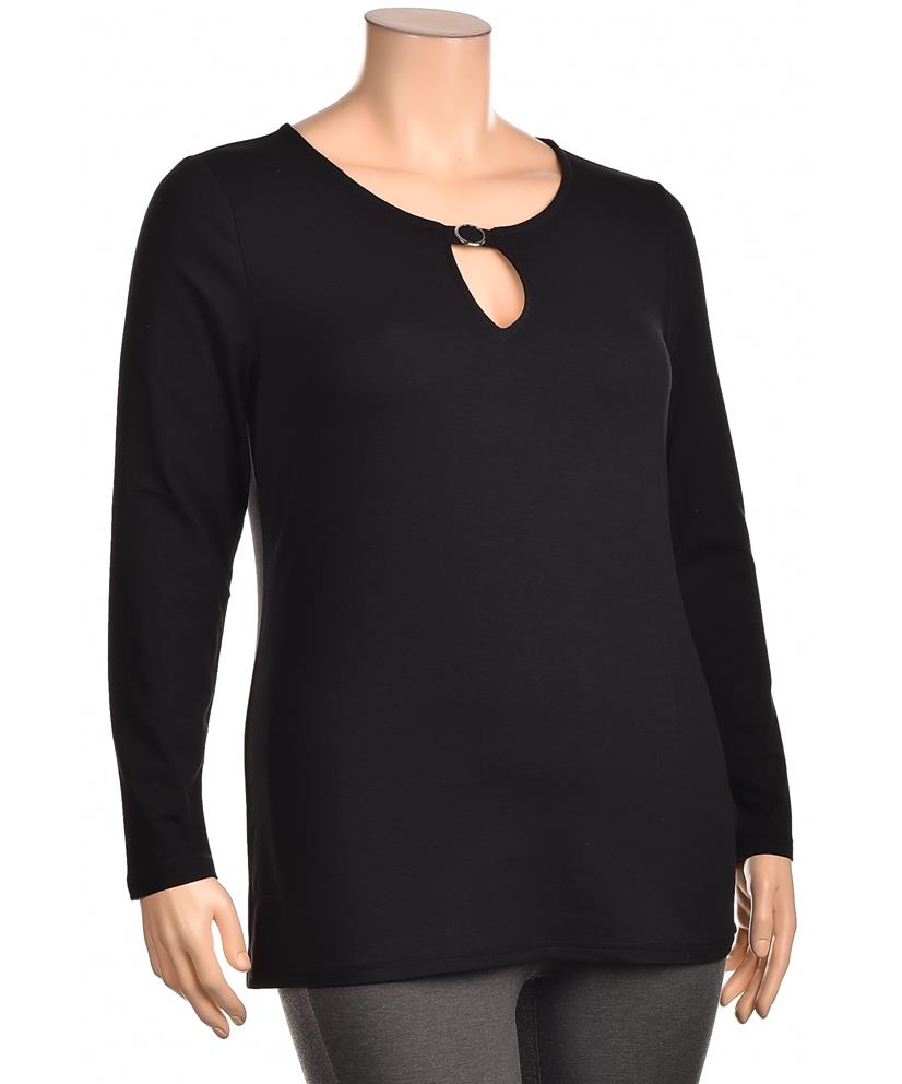 Елегантна дамска блуза от 100% памук с дълъг ръкав и деколте с капковиден разрез и малък метален аксесоар. Удобна, мека и подходяща за ежедневен или официален аутфит. Лесна поддръжка, не се деформира.
