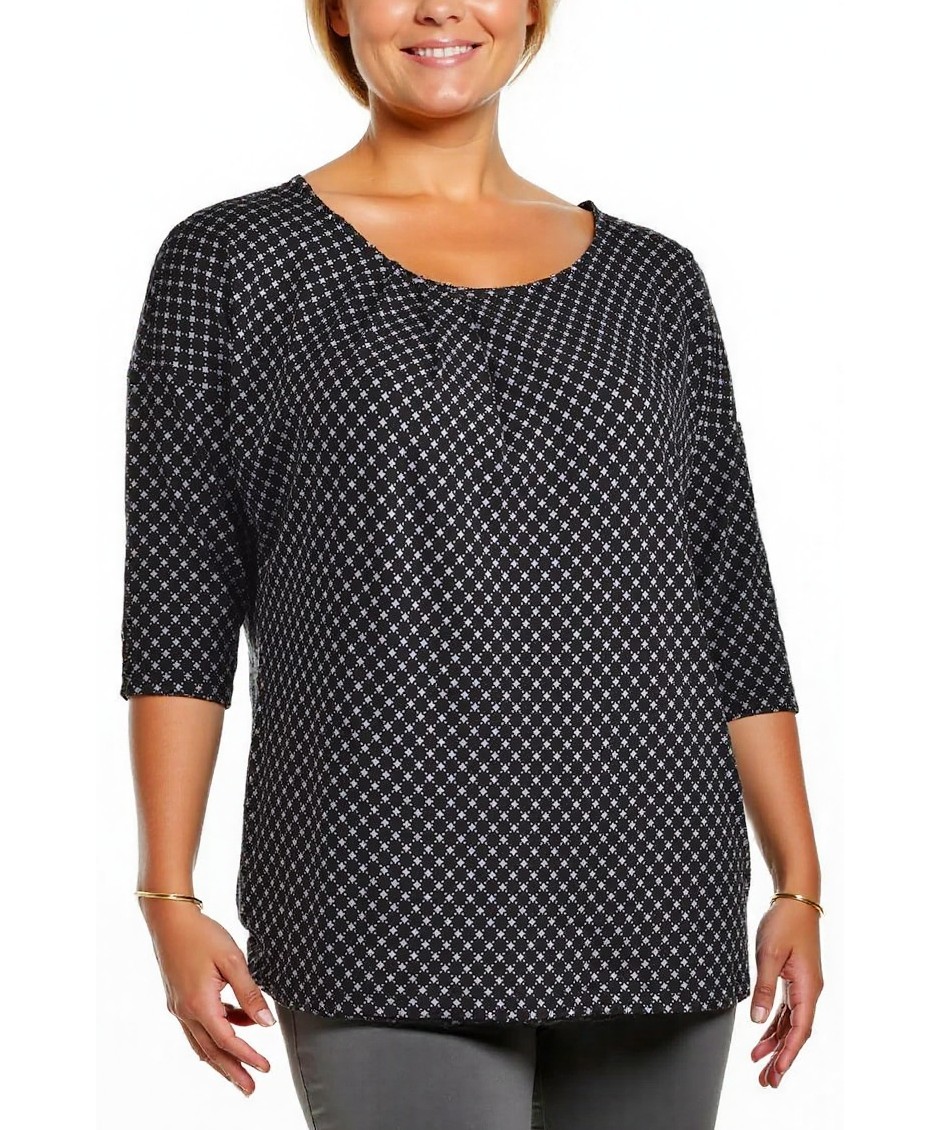 Дамска блуза от вискоза с фина геометрична шарка, свободна кройка, ръкави 3/4 и заоблено деколте. Удобна, дишаща и елегантна – идеална за всекидневно и офисно облекло. Лесна поддръжка запазва цветовете.
