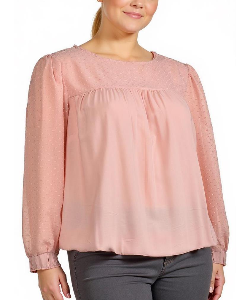 Дамската блуза е изработена от мека и дишаща вискоза. Предлага елегантен дизайн с дълги ръкави и леко набрана горна част. Подходяща за ежедневни и специални събития. Цвят: светлорозов.