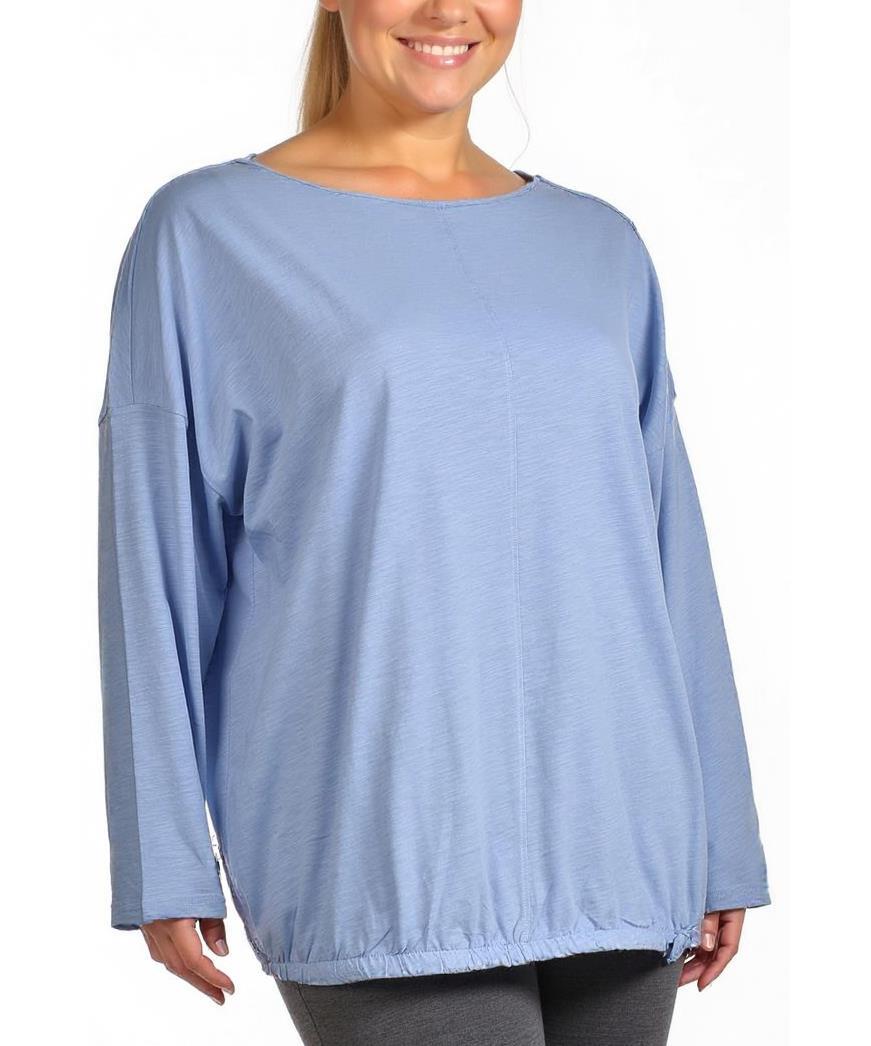 Стилна дамска блуза от мек памук в светлосин цвят. Свободна кройка с дълги ръкави и овално деколте, идеална за ежедневна визия. Завършва с еластична талия, която придава удобство и комфорт.