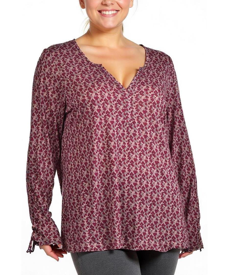 Дамска блуза от вискоза със стилен флорален принт в бордо и бяло. С дълги ръкави и V-образно деколте, тя осигурява комфорт и елегантност за ежедневието. Подходяща за всякакви поводи.