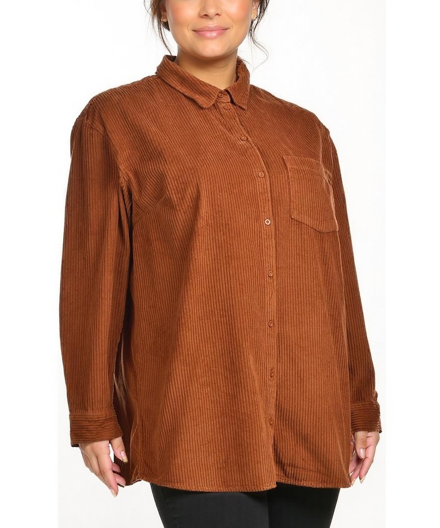 Дамска вельветова риза от 100% памук, свободна кройка, дълги ръкави, закопчаване с копчета и джоб. Топъл кехлибарен цвят, удобна и стилна за ежедневен уютен външен вид. Подходяща за есенно-зимни визии