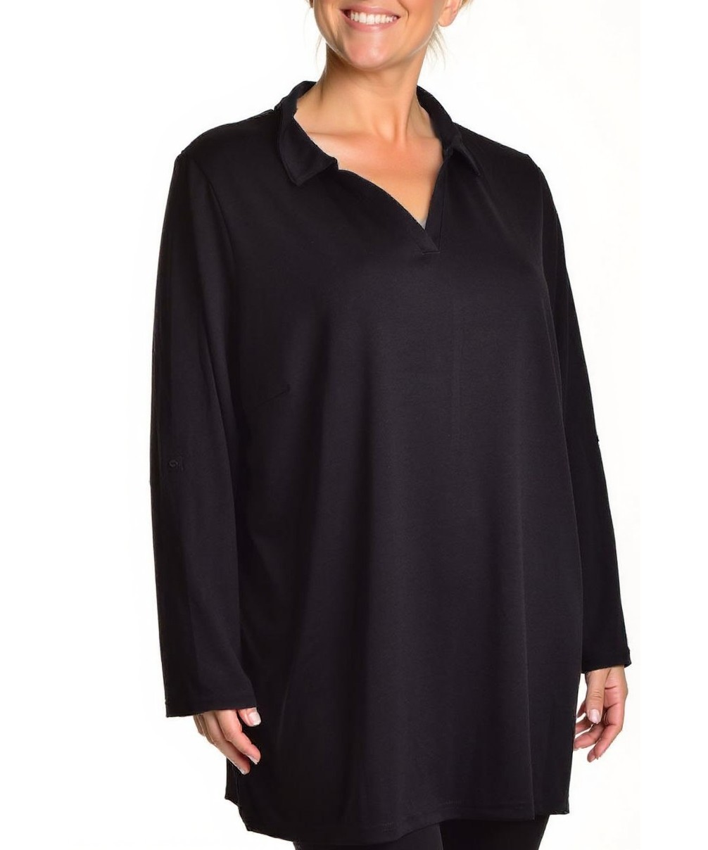 Дълга дамска блуза от вискоза в черно. Свободна кройка, V-деколте с яка и дълги ръкави. Мека, дишаща материя, лесна поддръжка. Стилна и удобна за всеки ден и офис. Перфектна за всички сезони и визии!!