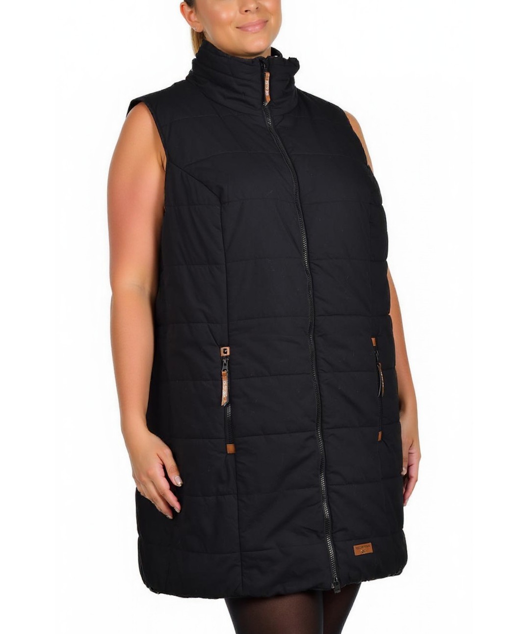 Дамска памучна грейка със средна дължина. Класически силует, висока права яка, централен цип и два странични джоба с цип. Лека вата за топлина, удобна за ежедневно носене. Подходяща за пролет и есен. XXL
