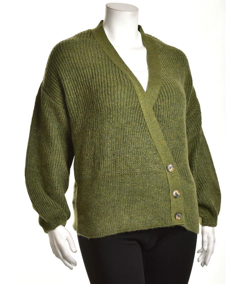 Удобна дамска жилетка в масленозелен цвят, мека плетка с V-образно деколте и три копчета. Oversize кройка, топла и стилна, идеална за есен- пролет и всекидневно носене. Практична и лесна за поддръжка!!