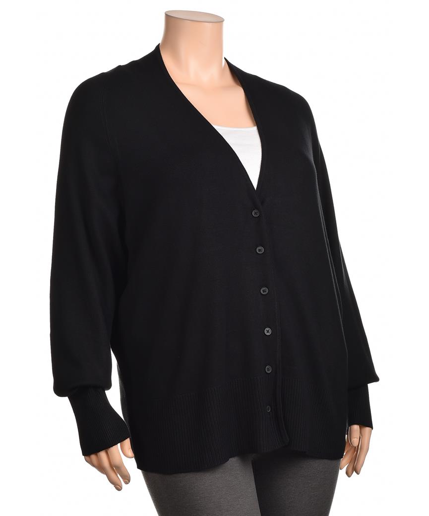 Дамска жилетка от вискоза, черна, с V-образно деколте и копчета. Свободен силует, мека и приятна на допир, идеална за всекидневно и по-официално обличане. Лесна за поддръжка, мека, с лек блясък и стил.