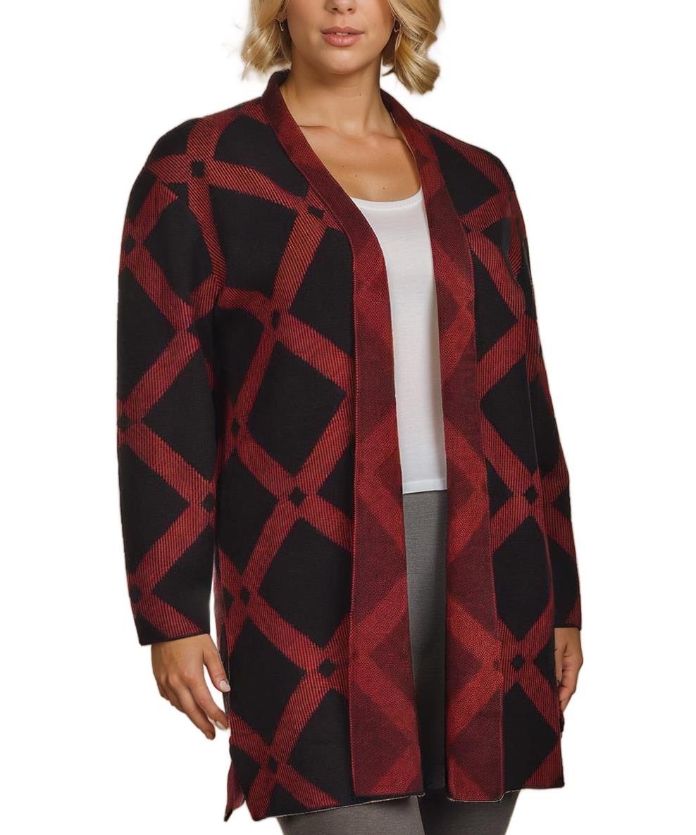 Дамска жилетка от вискоза с елегантен шахматен мотив в черно и червено. Подходяща за есенно-зимния сезон с дълги ръкави и свободна кройка. Идеална за всекидневно облекло и комфорт.