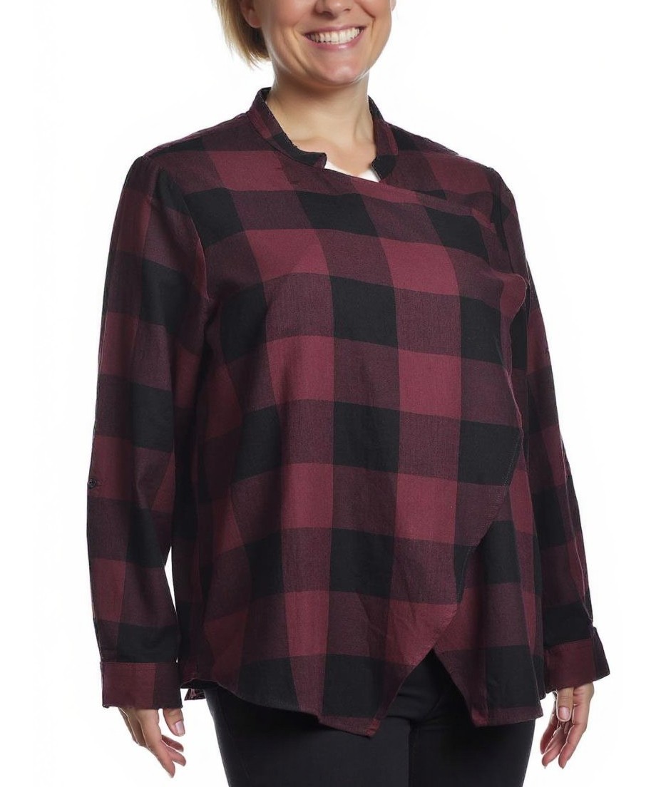 Дамска памучна жилетка в бордо и черно каре, свободен силует с дълъг ръкав и асиметричен подгъв. Мека и дишаща, идеална за ежедневно носене и многослойни визии. Лесна за поддръжка. Подходяща за годината