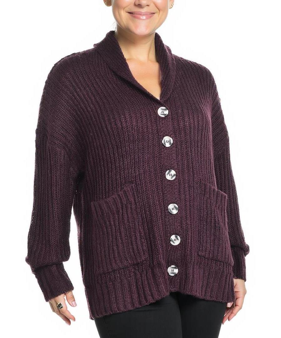 Стилна дамска жилетка в тъмно бордо, плетена с дебела рибка, големи копчета и два предни джоба. Удобна, топла и практична, подходяща за ежедневно носене и слоеви комбинации. Модерна визия за есен-зима.