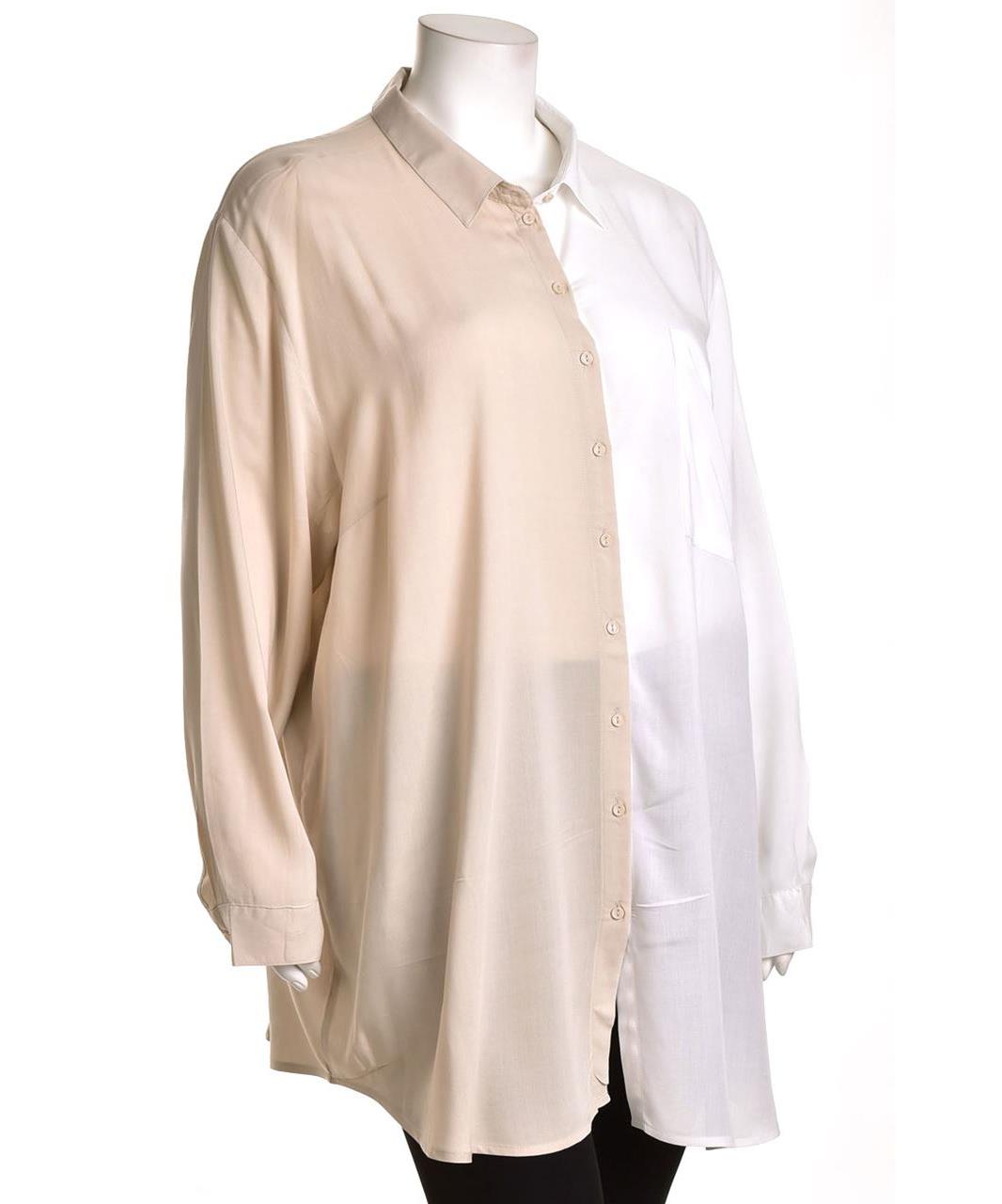 Елегантна дамска риза от вискоза в бежово и бяло. Свободен силует, дълги ръкави, копчета и класическа яка. Лека, дишаща и удобна за ежедневно и официално носене. Стилна, лесна за поддръжка и универсална!!