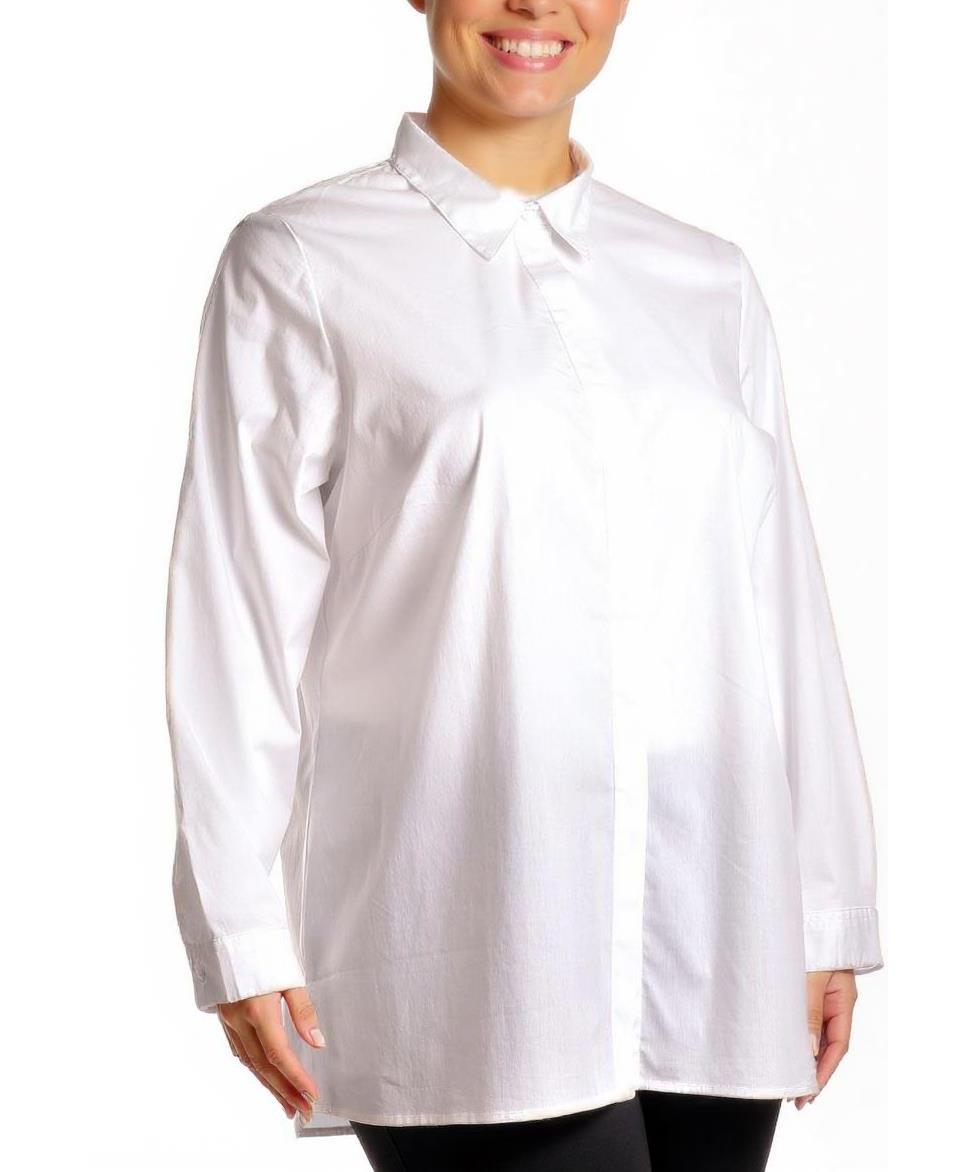 Елегантна дамска риза от 100% памук в чисто бяло. Свободна кройка, дълъг ръкав и класическа яка. Скрито закопчаване за минималистичен вид. Мека, дишаща и удобна за всеки ден. Подходяща за всеки ден.