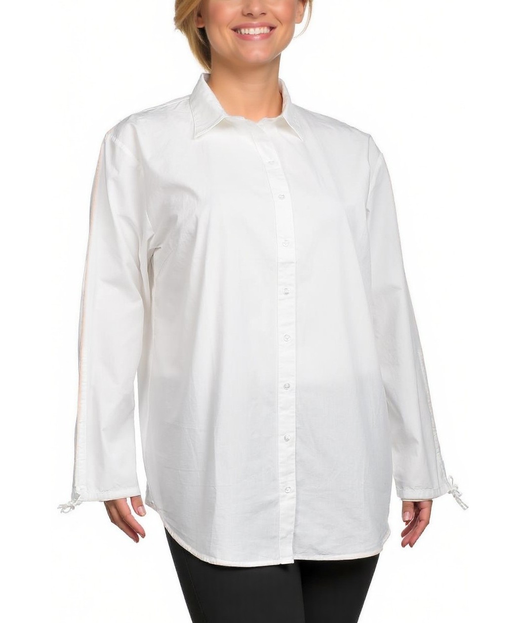 Класическа дамска риза от 100% памук в бял цвят. Свободна кройка, дълги ръкави с панделки на маншетите и копчета на предницата. Удобна, дишаща и лесна за поддръжка Подходяща за работа и ежедневно носене
