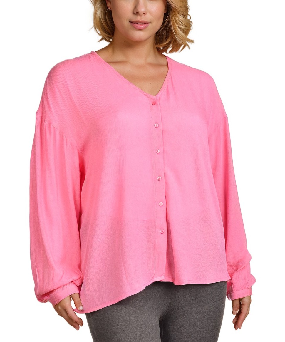 Дамска риза от вискоза в свеж розов нюанс. Лека, мека и приятна на допир, прави силуета свободен. Дълги ръкави, V-образно деколте и копчета отпред. Идеална за ежедневие и офис. Лесна поддръжка и стил.