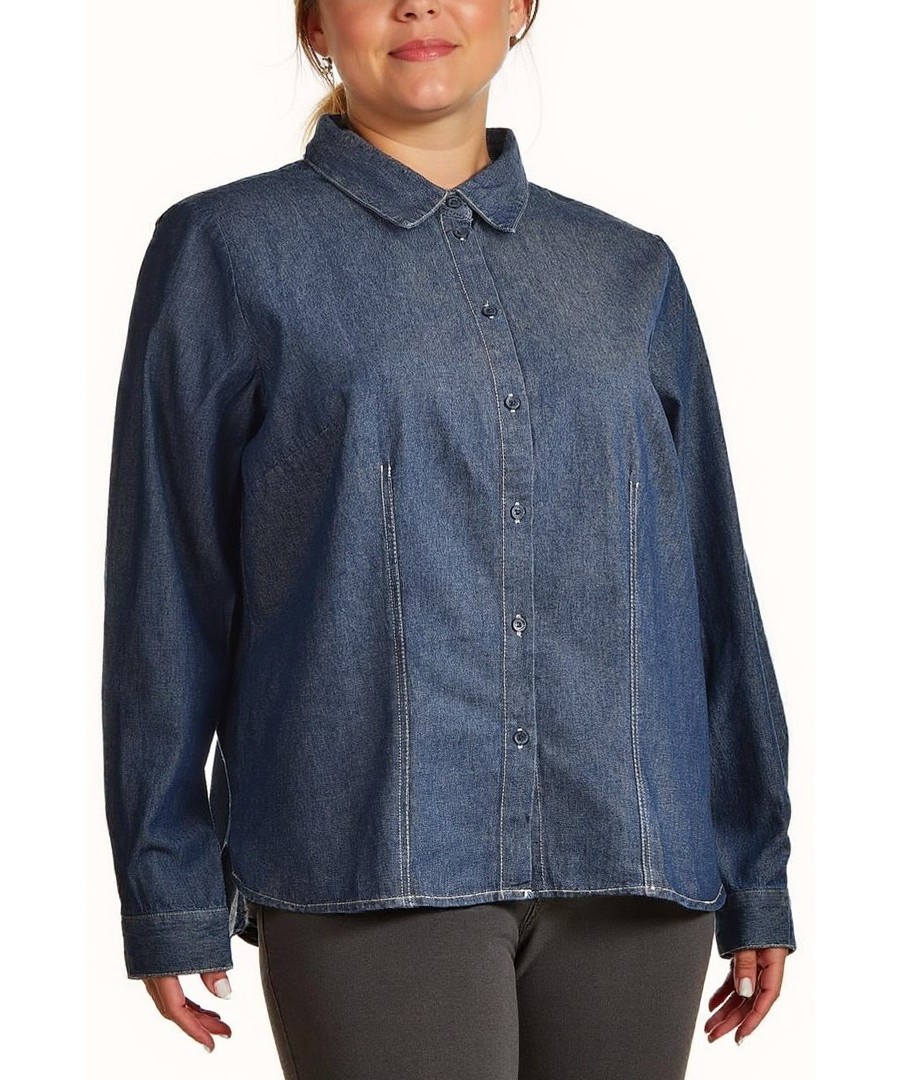 Класическа дамска памучна риза в дънков нюанс. Прав силует, дълги ръкави и копчета отпред. Мека, дишаща материя за ежедневен стил и удобство. Лесна за комбиниране. Подходяща за офис и свободно, удобна
