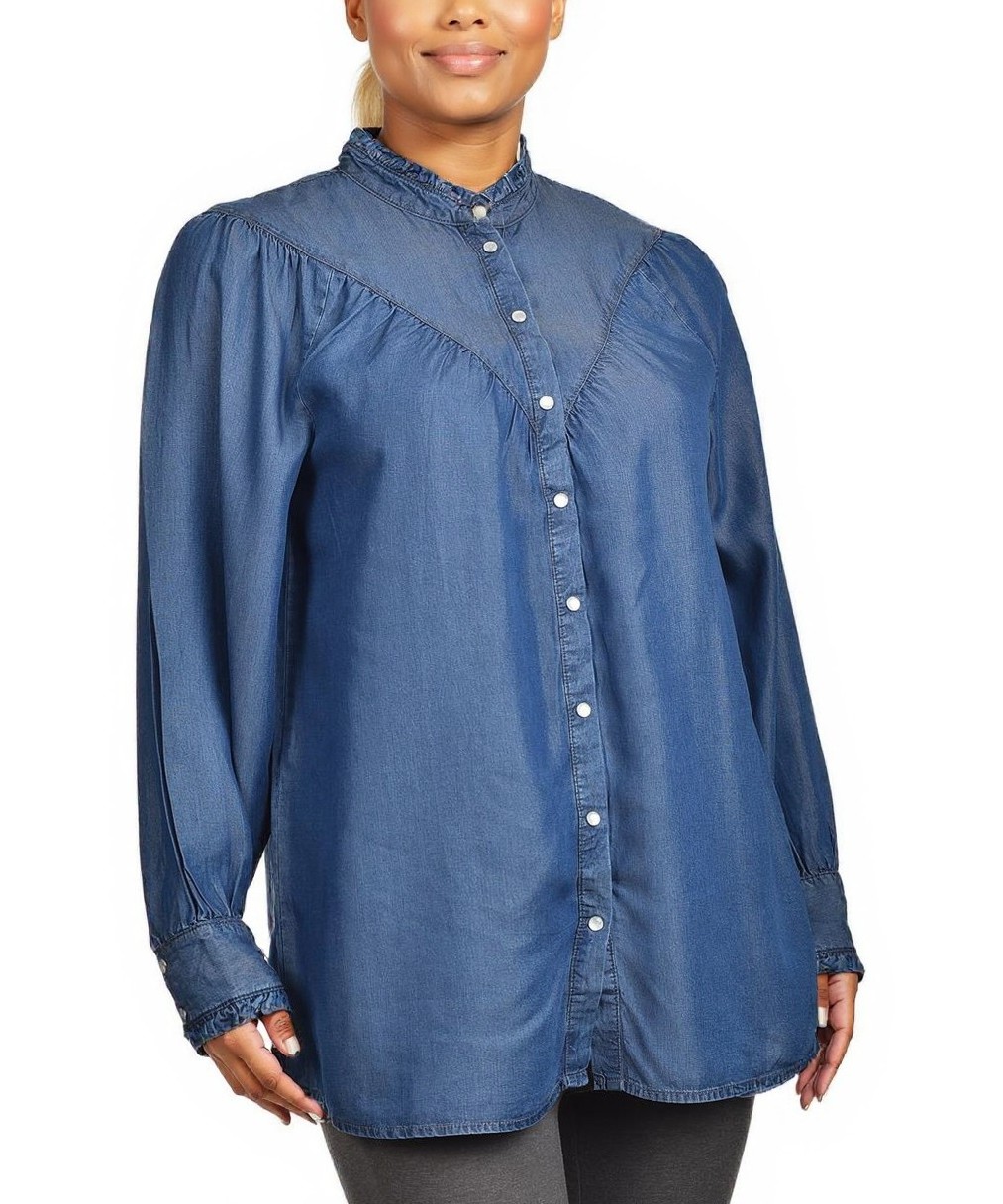 Елегантна дамска риза от лиоцел: мека и дишаща материя, свободен силует, нежни волани на якичката и маншетите, копчета по цялата предница. Подходяща за всеки ден и делови стил. Лесна грижа, устойчива!