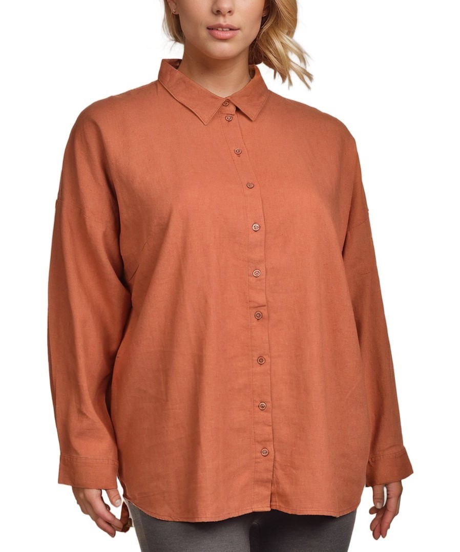 Дамска риза от ленена смес в топъл теракотов цвят. Свободна кройка, дълги ръкави с маншети, класическа яка и пълно закопчаване с копчета. Лекичка и дишаща, идеална за ежедневно носене. За пролетни дни