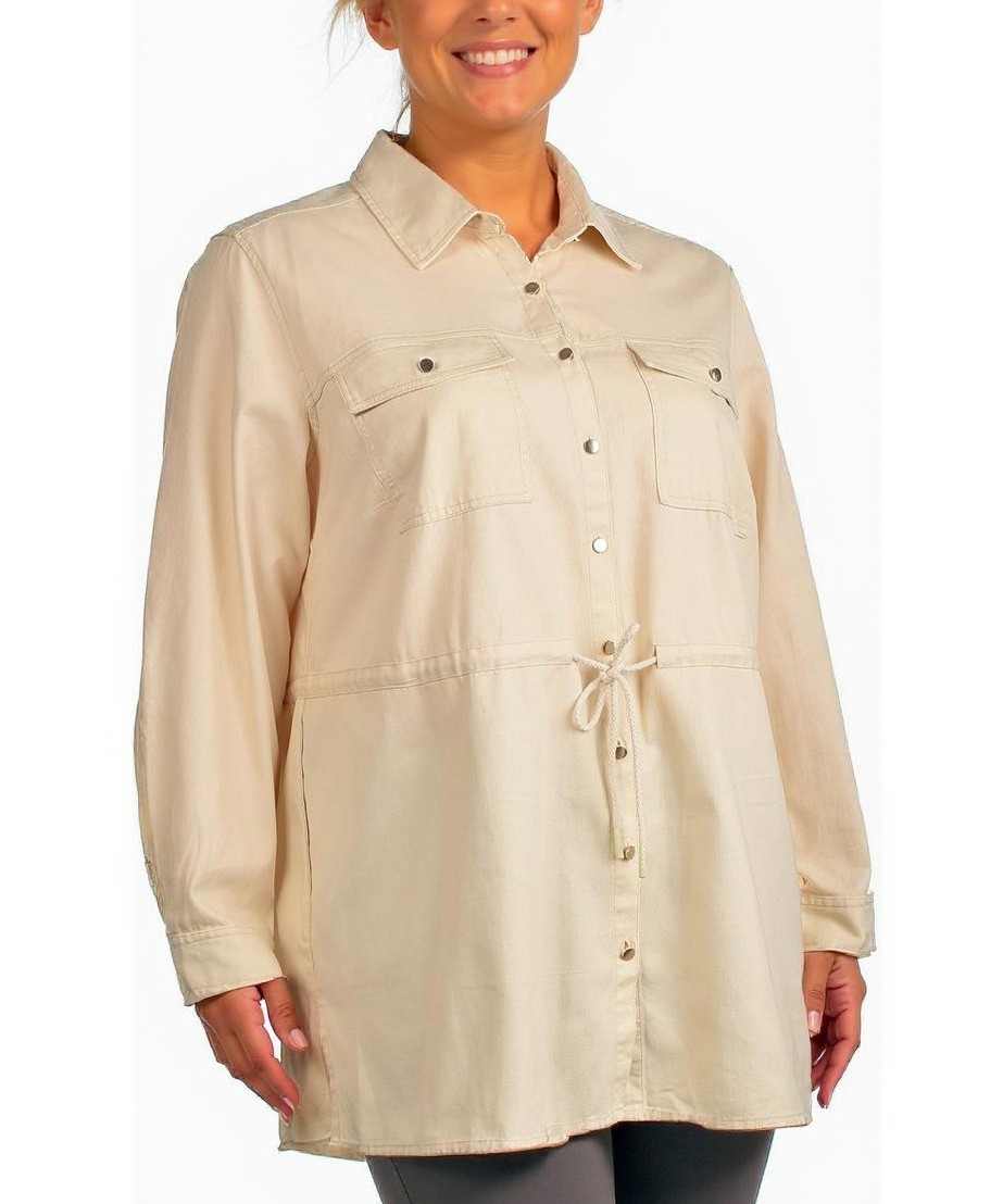 Дамска риза от памук, с дълъг ръкав и предно закопчаване с копчета. Има две горни джобчета с капачета, акцент в талията с връзка. Идеална за всекидневно носене, придава стил и комфорт.
